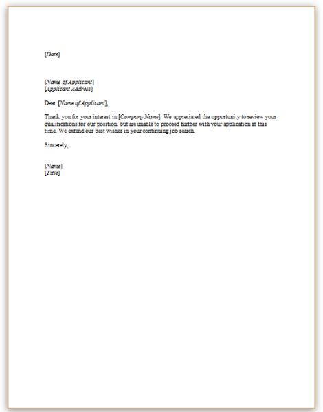 This sample letter informs a candidate who has interviewed with the company that an offer of employment will not be extended.