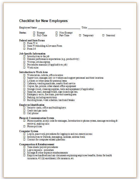 This sample checklist allows employers to review procedures related to orientation of newly hired employees.