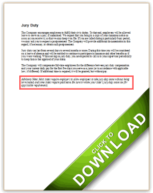 Please NoteThe sample forms and policies featured in this section may be used for general reference only. All sample forms and policies should be modified to meet your company’s individual needs and applicable laws. Federal and state laws do change and, as a result, the featured forms and policies may not comply with current requirements. We strongly recommend consulting an employment law attorney or HR specialist for assistance with customizing any forms, policies, or the sample employee handbook. Any links that have been provided as an additional source of forms or guidelines are also for general information purposes and cannot be guaranteed for accuracy or compliance with any particular law or requirement.